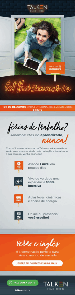 Com o Summer Intensive da Talken você aproveita o verão para avançar ainda mais no inglês e impulsionar a sua carreira. Venha conhecer!