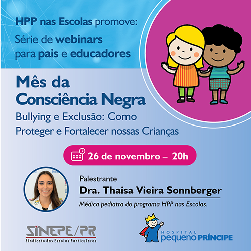 Bullying é o tema do último webinar para pais e educadores do Hospital Pequeno Príncipe com apoio do Sinepe/PR
