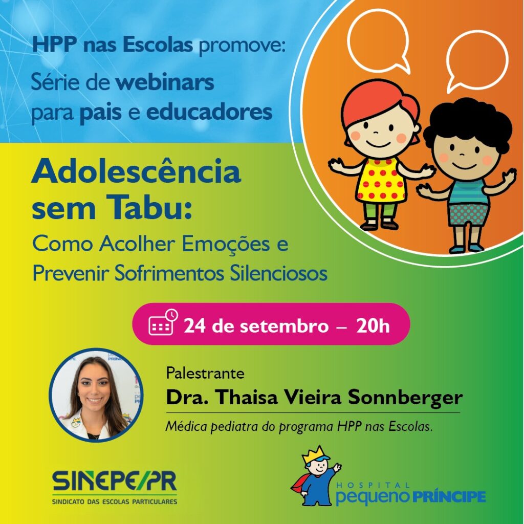 Série de webinars para pais e educadores do Hospital Pequeno Príncipe conta com o apoio do Sinepe/PR. Primeira aula é agora em setembro
